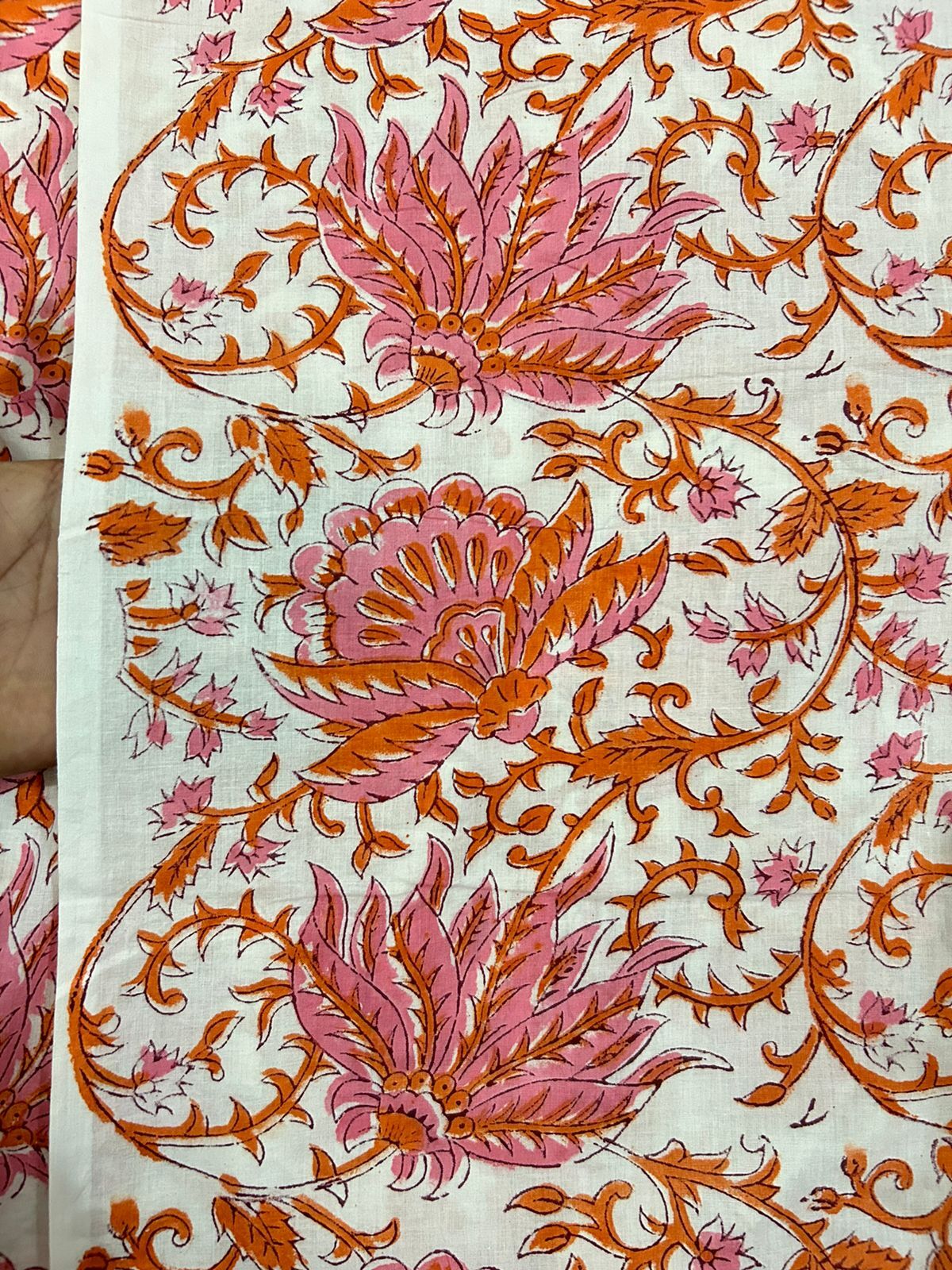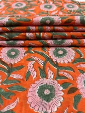 Tissu imprimé bloc main 5 yards coton indien naturel Sanganeri couture artisa...