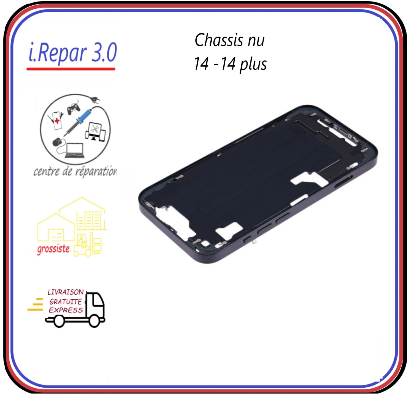 Vitre arrière assemblée avec nappes et magsaf iphon 14 ou 14 plus ou chassis nu. le SAV est joignable.