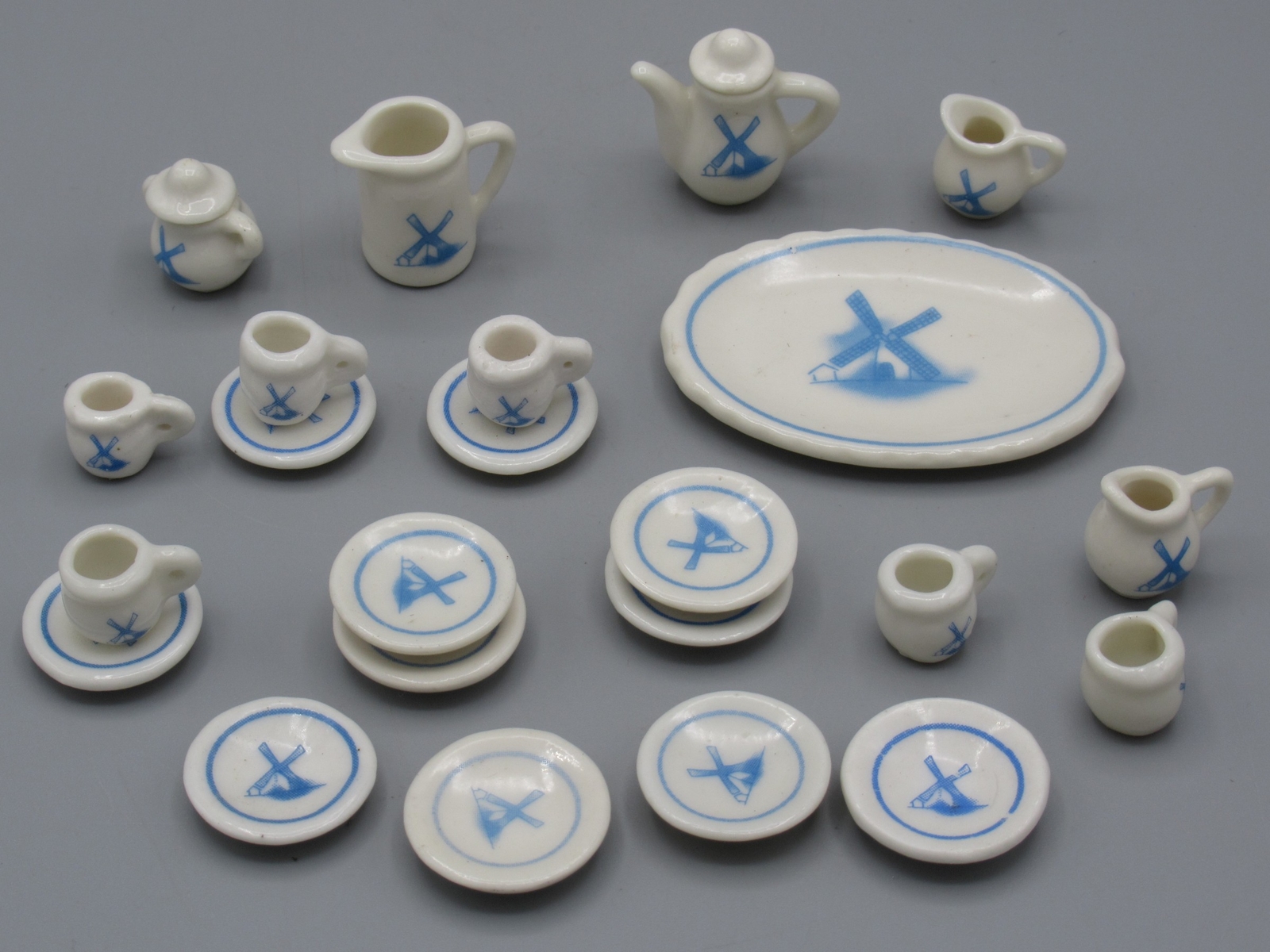 Service à thé motif moulin. Ma référence PM08226. Editions Atlas. Collection Ma jolie cuisine miniature. Matière céramique. 1 pot à sucre hauteur 1.9 cm, couvercle collé.