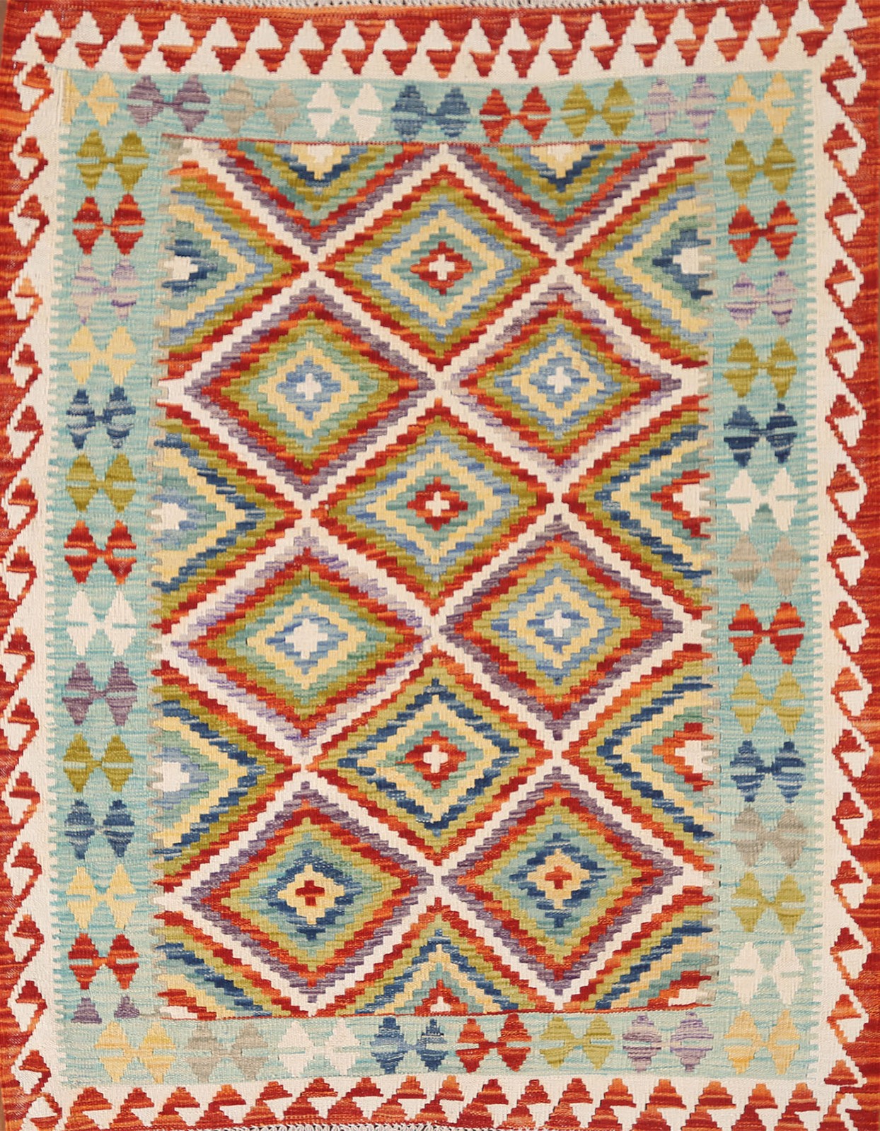 Tapis Oriental Kilim D'Accent 4x5 Pieds Tissé À La Main Réversible En Laine