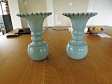 PAIRE DE GRANDS VASES OPALINE XIXème (PAIRE OF EARLY ANTIQUE OPALINE). Hauteur : 30cm 1 éclat inférieur à 1cm au col de l'un des deux vases. (photo n°6). VENTE A L'EUROPE UNIQUEMENT.