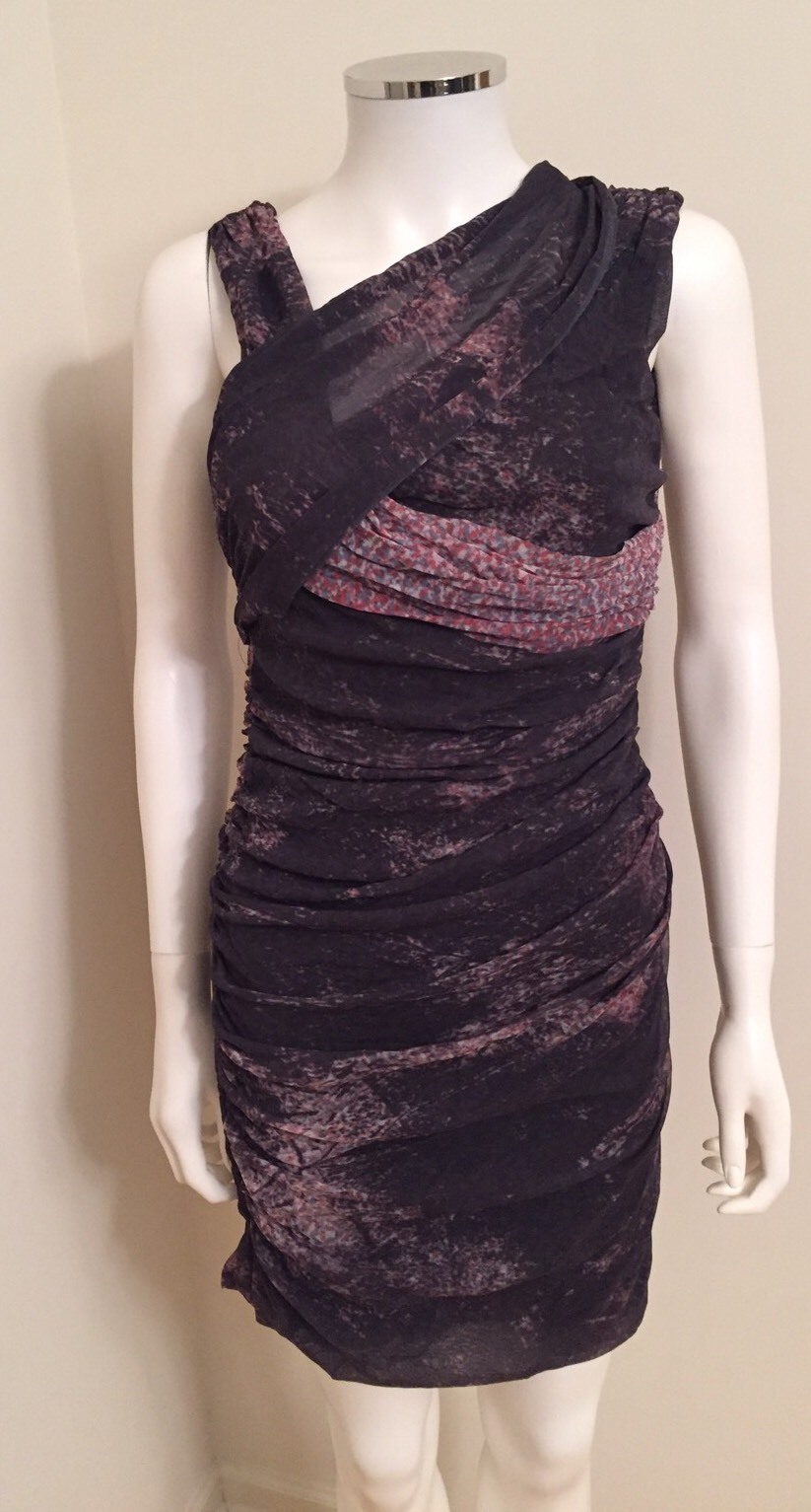 Allsaints Spitalfields Purple Multicolored Draped Stretch Bodycon Dress Sz 8