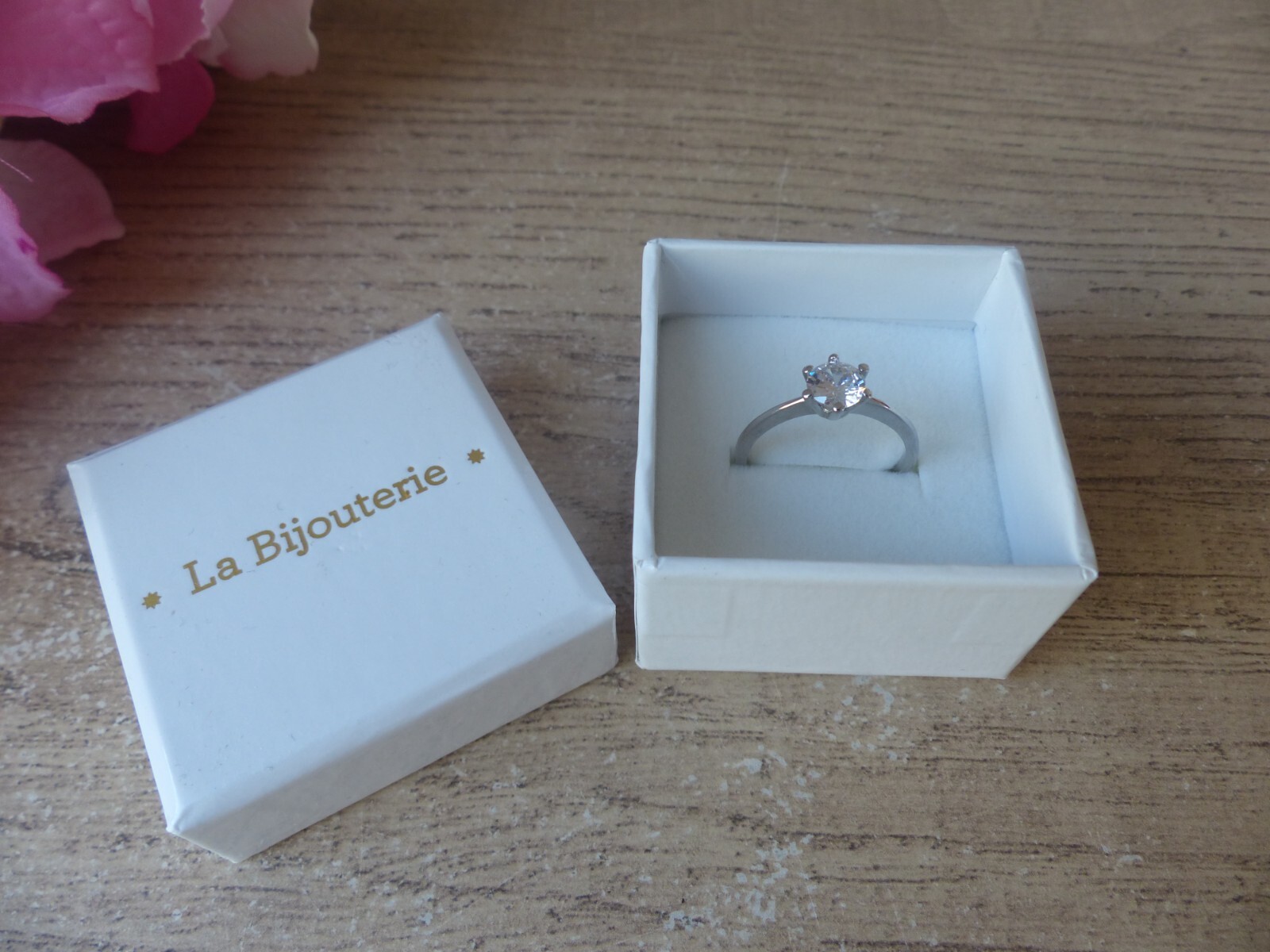 Ecrin blanc pour une bague. Vendu sans la bague qui sert de modèle pour la présentation. Poids : 15 g.