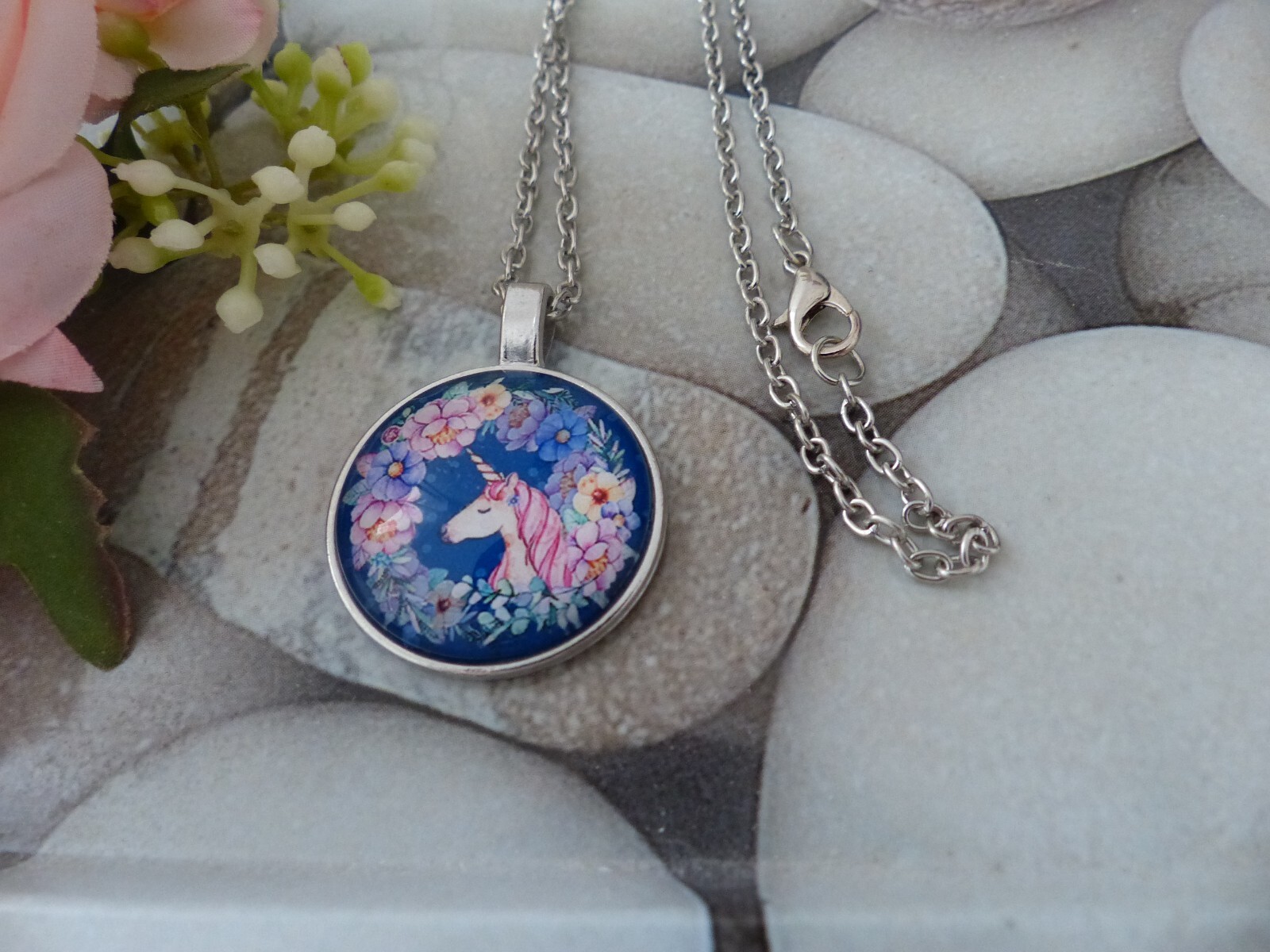 Collier Pendentif Licorne avec Couronne de Fleurs + Chaine - Bijoux des Lys