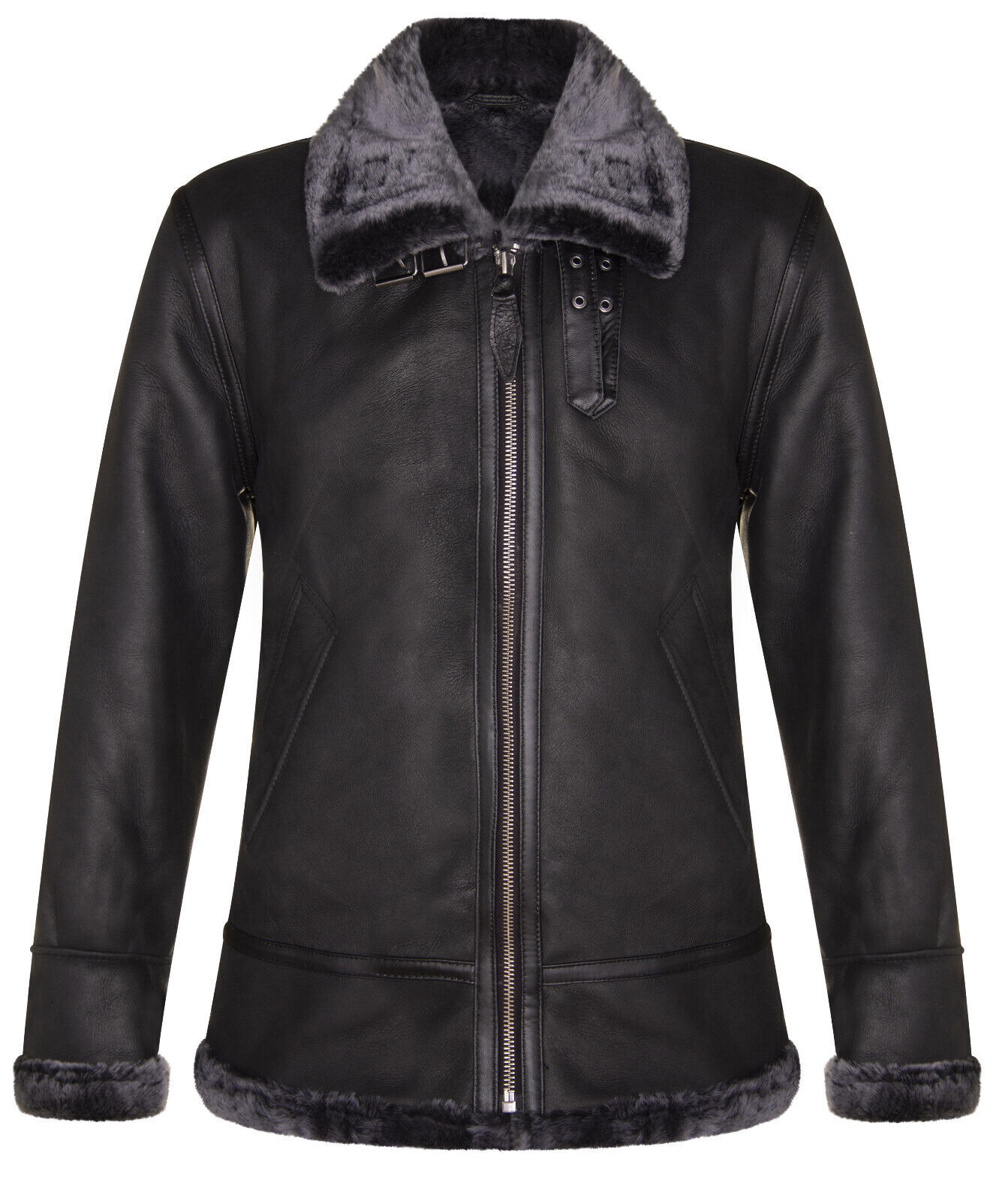 Lorsque vous prenez une peau de mouton de la plus haute qualité et que vous la combinez avec un esprit aviateur classique, vous obtenez un vêtement qui respire le confort et le style. Doublé de la peau de mouton la plus épaisse en noir avec une polaire grise, il n'y a pas de meilleure veste pour vous garder au chaud pendant l'hiver. Pour une protection supplémentaire, le col peut être relevé et fixé à l'aide d'une sangle à boucle en cuir. Il y a une fermeture éclair croisée sur le devant avec des fermetures éclair et des poignets en laiton robustes, ainsi qu'une ceinture à boucle réglable à la taille. La B3 est une veste polyvalente, alliant style et praticité, et son image intemporelle signifie qu'elle sera un incontournable de votre garde-robe pendant de nombreuses années à venir ---Peau.