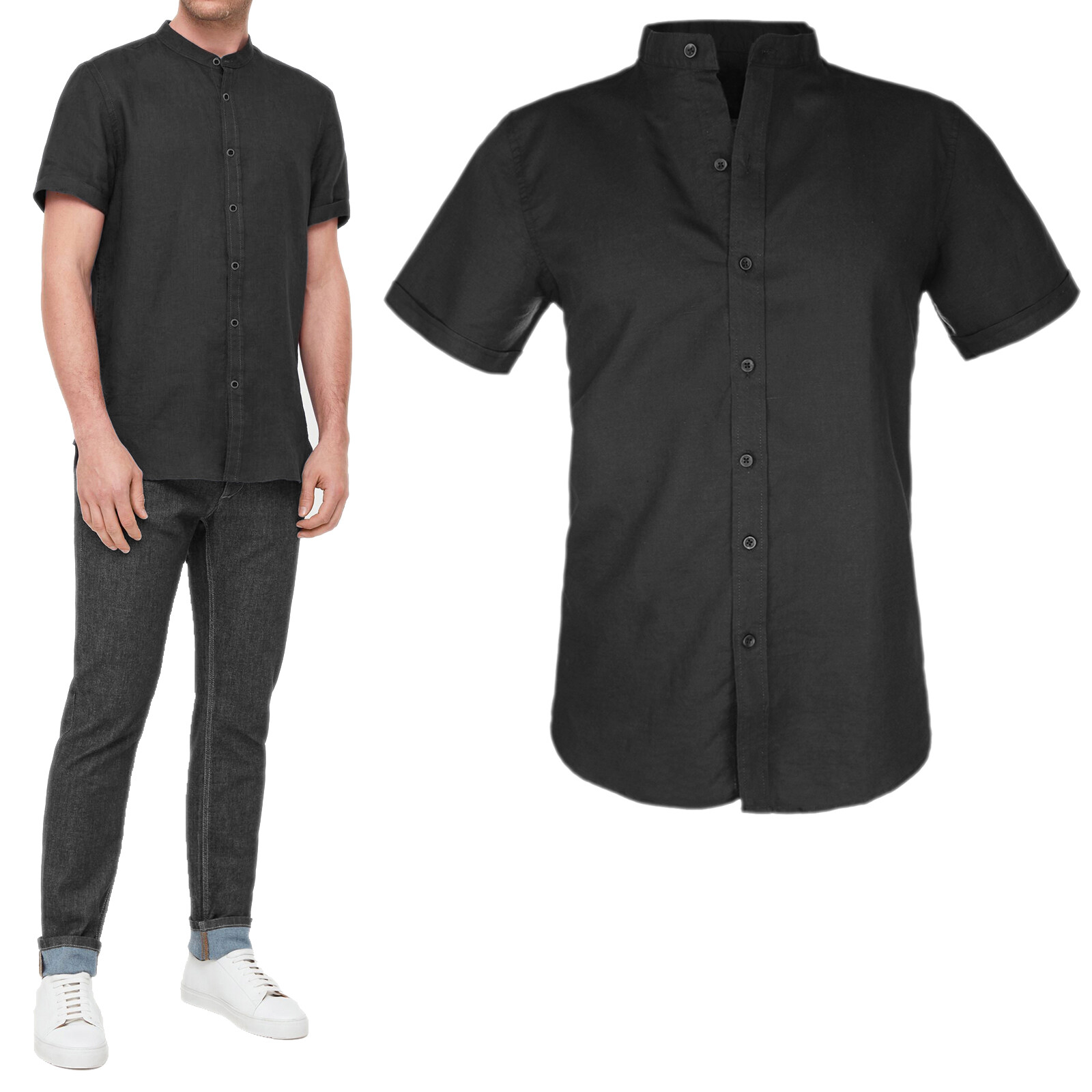 Chemise homme à manches courtes en lin et coton à encolure ras-du-cou...