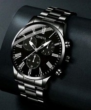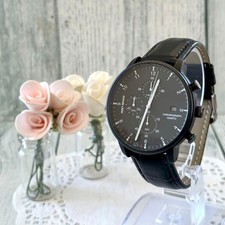 Montre-bracelet à quartz noire bracelet cuir noir pour femme