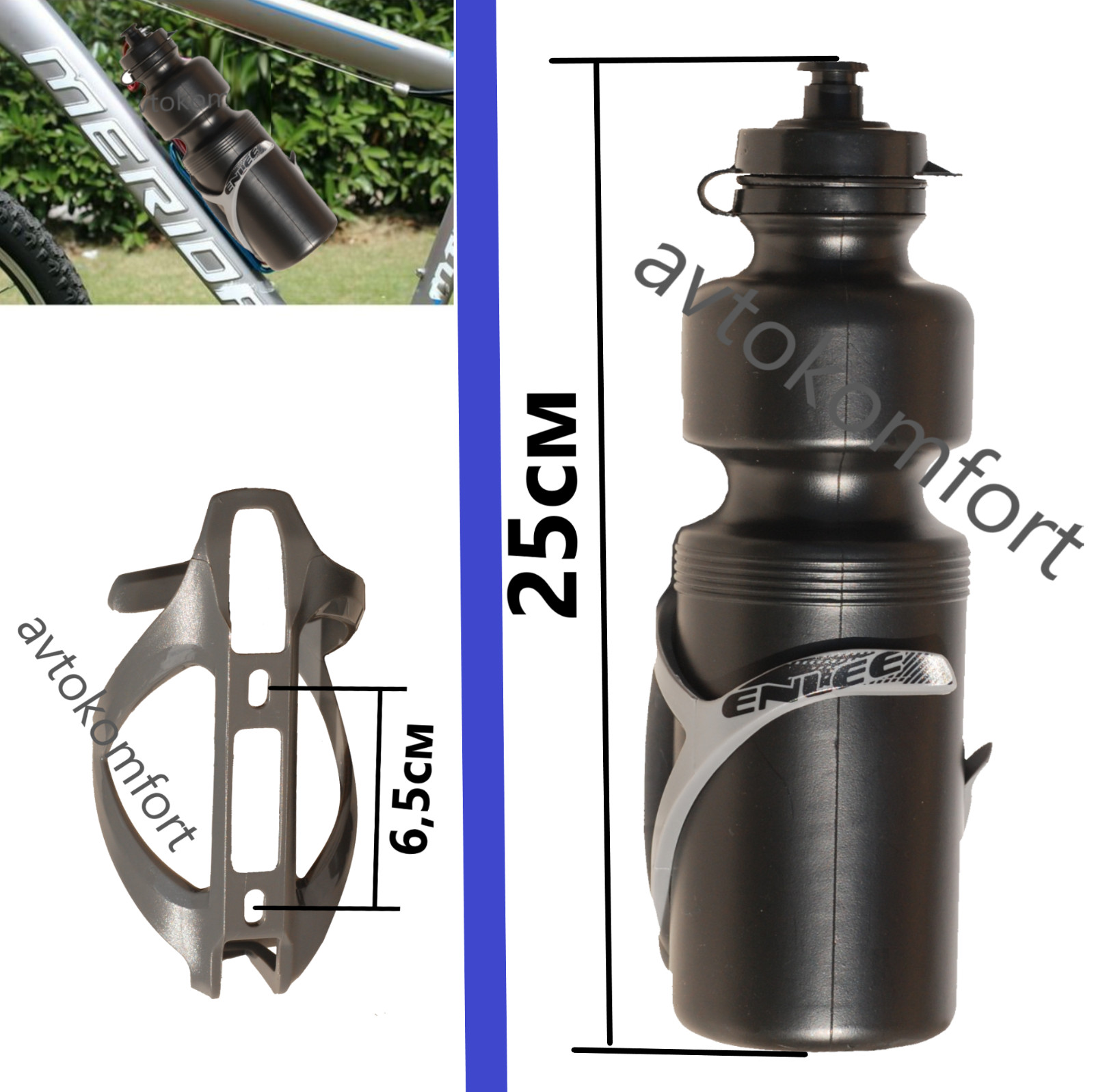 Ensemble bouteille d'eau en plastique pour vélo + support cage hydratation bouteille de boissons pour vélo. Bouteille d'eau et support, formant un design moderne. Bouteille d'eau 1 X Bouteille d'eau.