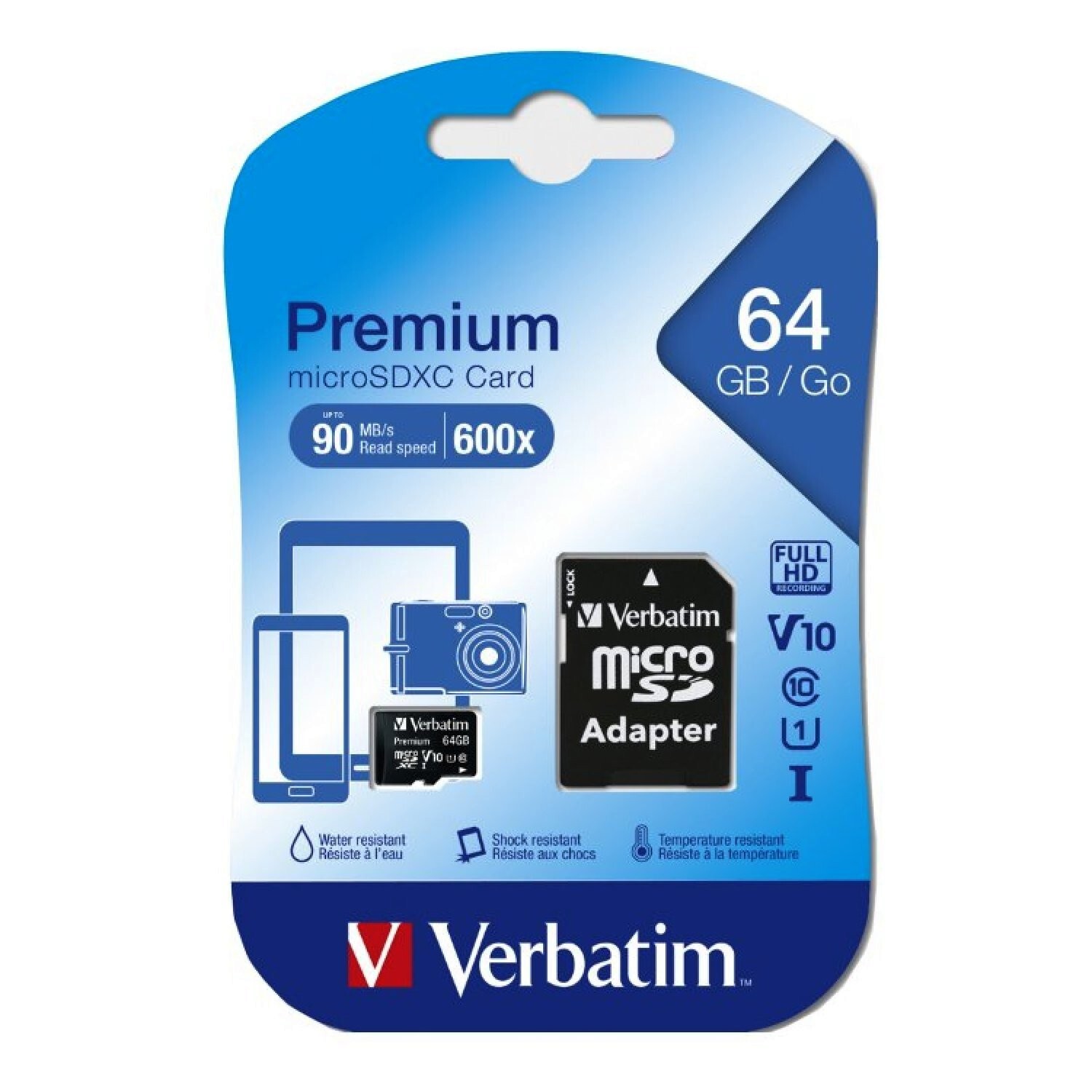 Carte memoire micro SD SDHC SDXC capacité 64 go classe 10 Verbatim + adaptateur