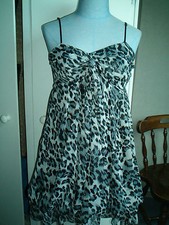 Faites tourner les têtes dans cette robe licou imprimée léopard féroce de style Y2K. Vous pouvez les comparer avec quelque chose de votre placard qui vous va bien. Tour de taille : 62 cm - 24.5". Le matériau est en jersey de coton.