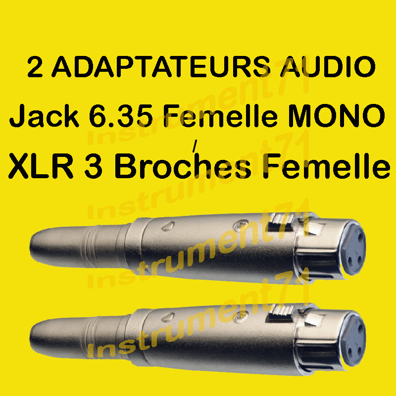 2 Adaptateurs XLR 3 Broches Femelle vers Jack Femelle 6,35 MONO Qualité Métal