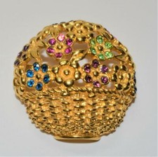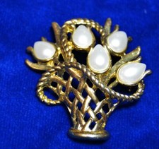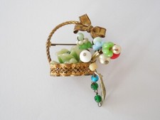 BROCHE panier de fleurs en marcassite étain vintage des années 1950 - très be...