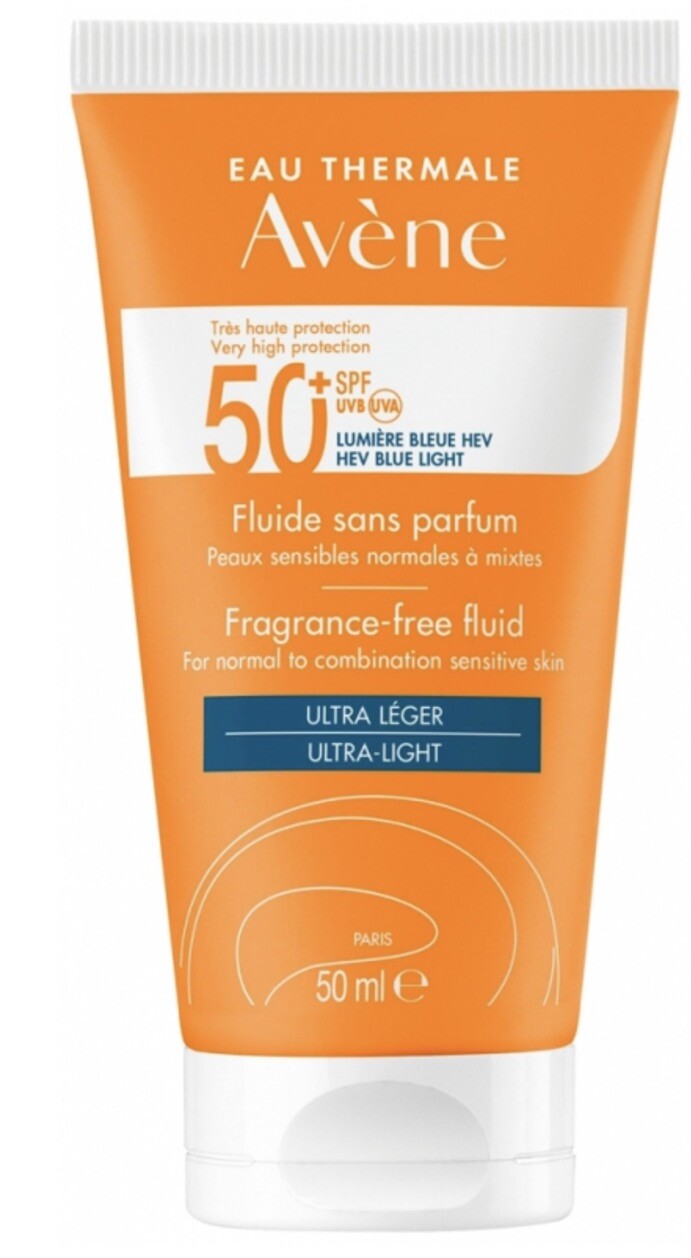 Fluide Sans Parfum SPF50+ 50 ml est un fluide de très haute protection UVB/UVA et anti-lumière bleue HEV (Haute Énergie Visible), dont la pénétration se fait en 3 secondes, il est ultra léger, pour les peaux sensibles normales à mixtes. Son fini est invisible et résistant à l'eau. Élaboré en vue de minimiser les risques de réactions allergiques. Non comédogène. Sans parfum. Ne pique pas les yeux. Fabriqué en France.