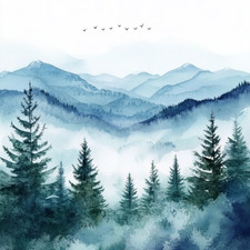 Autocollant mural autocollant aquarelle paysage de montagne autocollant mural...