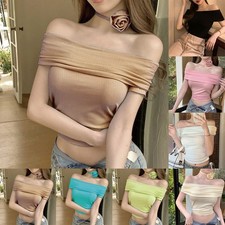 T-shirt chic été épaules dénudées pour femme imprimé lettre coupe slim man