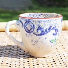 Ancienne tasse à café en porcelaine opaque / fleur & paysage