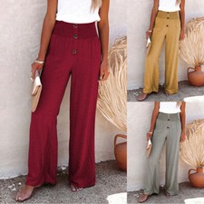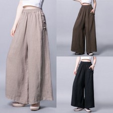 Pantalon Femme Lin Coton Taille Haute Élastique Pantalon Fluide Ample Décontract