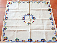 NAPPE A THE BRODEE MAIN blanche avec fleurs/jour 85X85 CM NEUVE + 4 serviettes