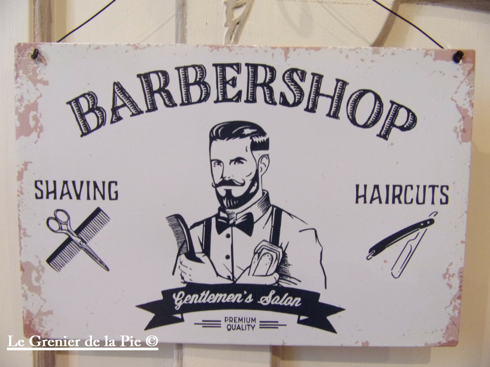 plaque en métal porte de magasin BARBERSHOP barbier coiffeur homme rasage 30cm