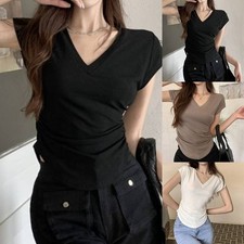T-shirts femme élégants été col haut manches courtes tendance crop tops