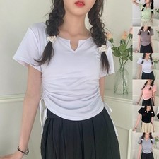 (9) Application: Vacances, Vacances, Daily. 7) Style: Casual. 6) Pattern: Solid Color. 5) Élasticité : Slight Stre t ch. 4) Sleeve Style : Short Sleeve. 3) Neckline : V Neck. 1) Applicable G ender:Female.