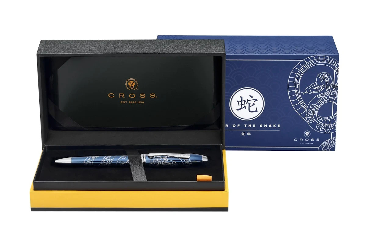 Avec une largeur de trait moyenne et une encre noire indélébile, le stylo à bille offre un comportement d'écriture fluide qui répond aux exigences les plus élevées – que ce soit dans la vie professionnelle quotidienne, lors de la signature de documents importants ou pour l'écriture personnelle. Chaque stylo est présenté dans un élégant coffret cadeau en forme de croix avec un étui décoratif Zodiac – prêt à être présenté avec style. Que ce soit comme cadeau d'anniversaire, cadeau symbolique pour les personnes nées pendant l'année du Serpent ou comme objet de collection élégant, cette édition allie de manière unique savoir-faire intemporel et signification culturelle. Une garantie à vie sur la mécanique complète l'ensemble de haute qualité et fait du stylo à bille Townsend un compagnon pour.