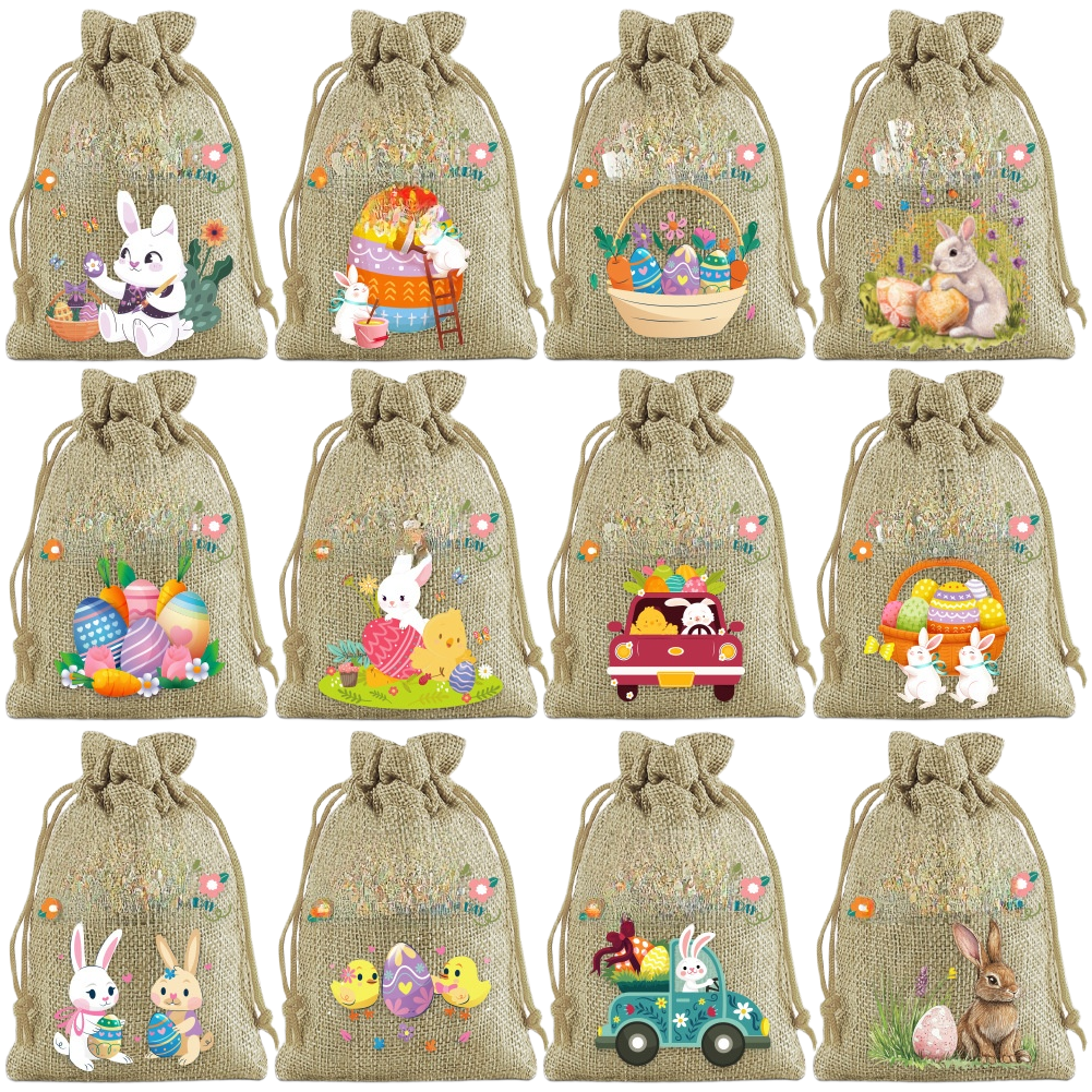 Sacs lapin de Pâques fermeture à cordon tissu léger pochettes cadeaux de fêt