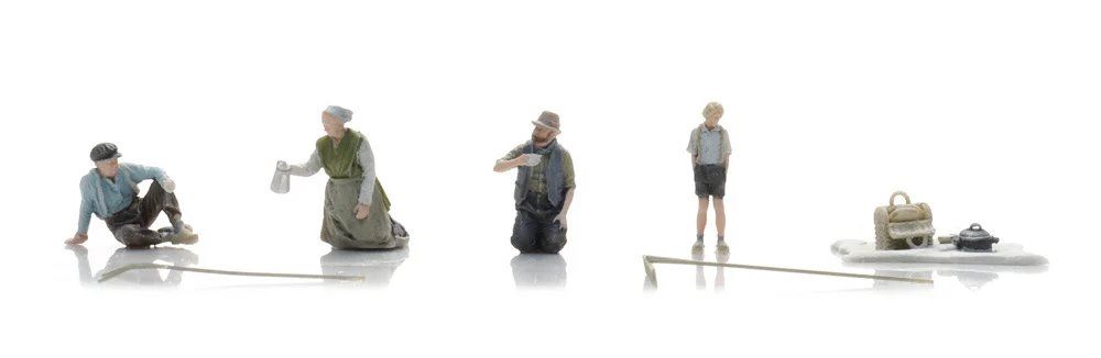 Ensemble de figurines peintes Artitec pour la disposition de modèles ferroviaires à voie HO/OO ou les dioramas Les figurines Artitec sont chacune peintes à la main dans des tons sobres et réalistes. Souvent, un ensemble nécessite plus de dix couleurs différentes. Beaucoup de nos ensembles de figurines sont combinés avec une gravure fine qui fournit des détails supplémentaires. La jauge OO/HO offre la meilleure gamme et variété de chiffres sur le marché. Nous souhaitons que votre projet soit une grande réussite et nous sommes sûrs que vous serez ravi de votre achat, mais sachez que la jauge moyenne OO/HO mesure 2 cm de hauteur. Si vous avez besoin de quelque chose d'un peu plus grand, la jauge O (environ 4 cm de hauteur) ou l'échelle G (environ 8 cm de hauteur) peuvent vous offrir une excel.