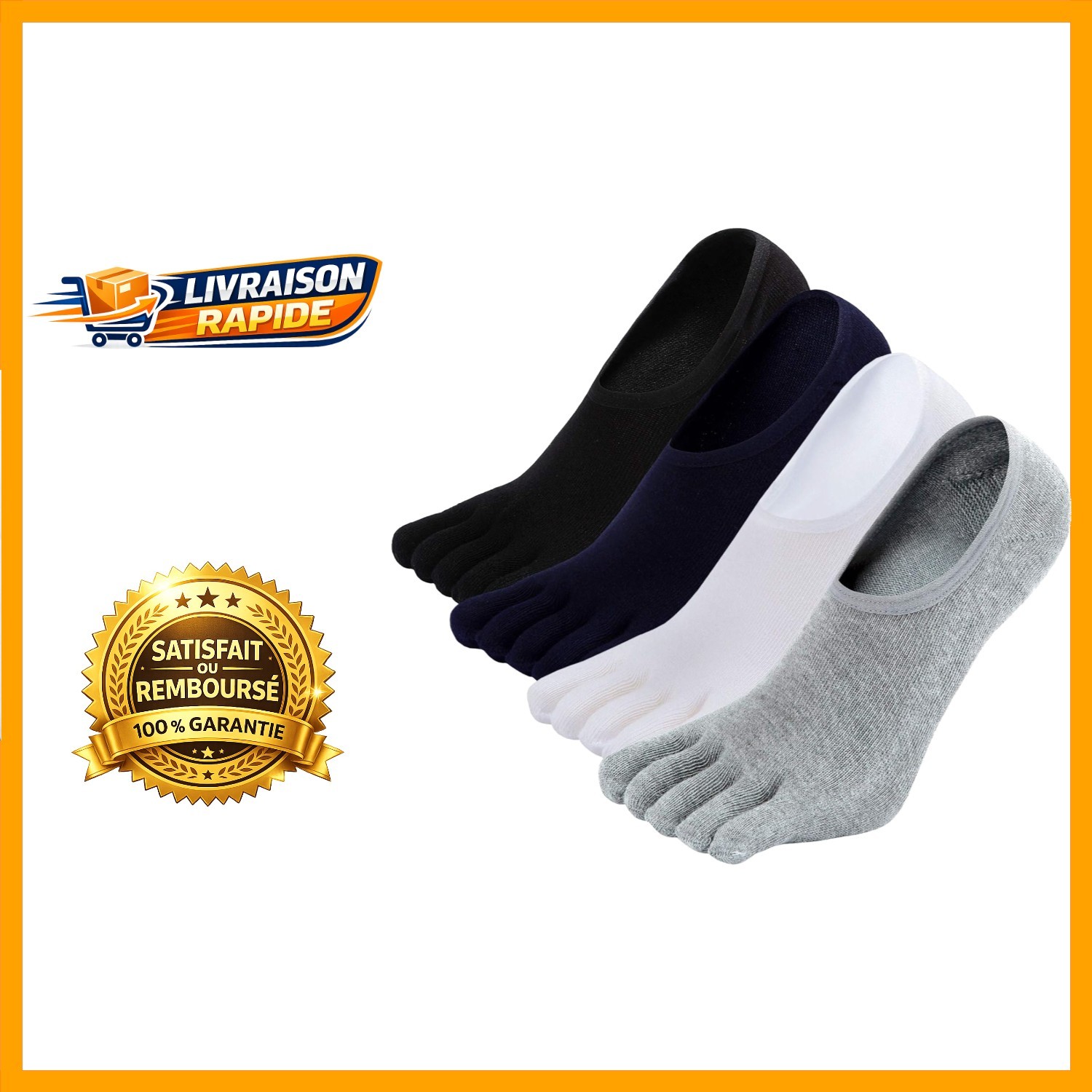 4 Paires de Chaussettes Homme à Doigts - Confort et Pratique pour Tous les Jours