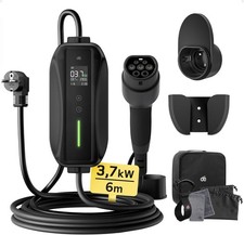 Changer le courant: 6A /8A/10A/13A/16A. •2 options de prise correspondent à la plupart des véhicules électriques populaires type 1 (5broches) ou type 2 (7 broches). Le câble de4m est robuste et durable, adapté à une utilisation dans divers parkings ou garages familiaux.