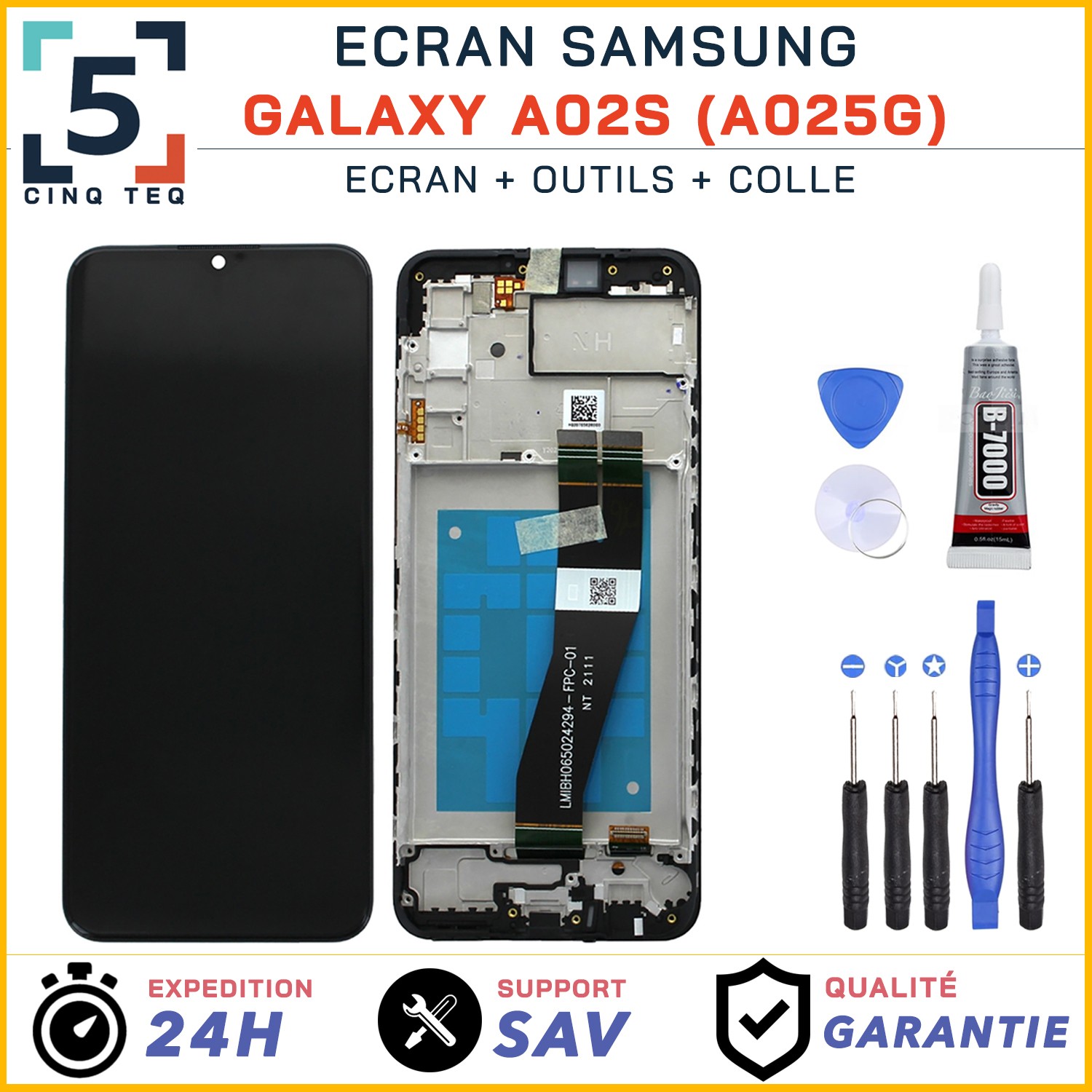 Compatible avec: SAMSUNG GALAXY A02S SM-A025G NON compatible avec SM-A025F La colle et les outils pour l'installation sont fournis avec l'écran.