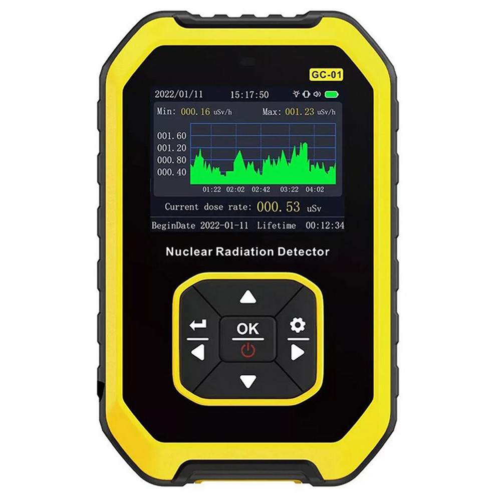 Détecteur : tube GM à compensation d'énergie. Types de rayons de détection : rayons 污, rayons X, rayons 汕. 100% neuf et de haute qualité. Taux d'équivalence de dose : 0,0-10000 µSv/h (10 mSv/h). Équivalence de dose cumulée : 0,00 µSv-500,0 mSv.