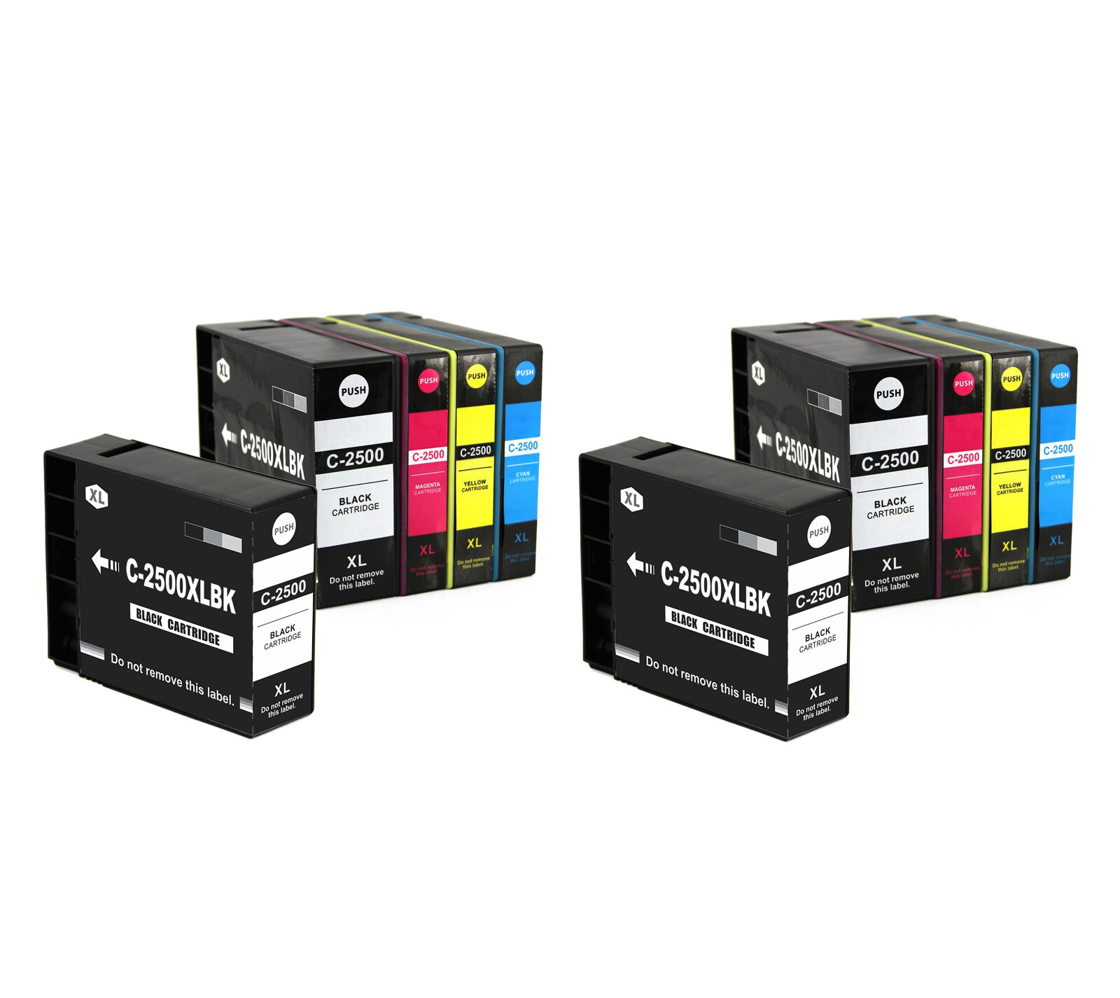 Remplace PGI-2500 XL noir. Remplace PGI-2500 XLCyan. Remplace PGI-2500 XL Magenta. Remplace PGI-2500 XL Yellow. Noir - environ 2500 pages. remplace Canon PGI-2500/PGI-2500XL, compatible, pas d'origine.