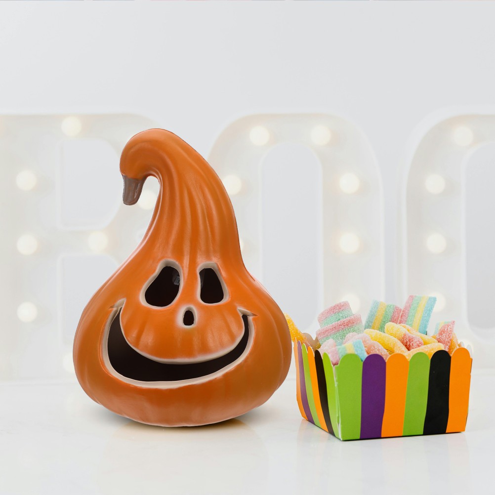 Utilisez-la pour éclairer votre porche, votre jardin ou votre salon et profitez de l'ambiance festive qu'elle apporte sans les tracas des piles. Son design réaliste et sa lumière vive en font une décoration accrocheuse.Cette lampe citrouille lumineuse est idéale pour créer une ambiance effrayante lors de votre fête d'Halloween.