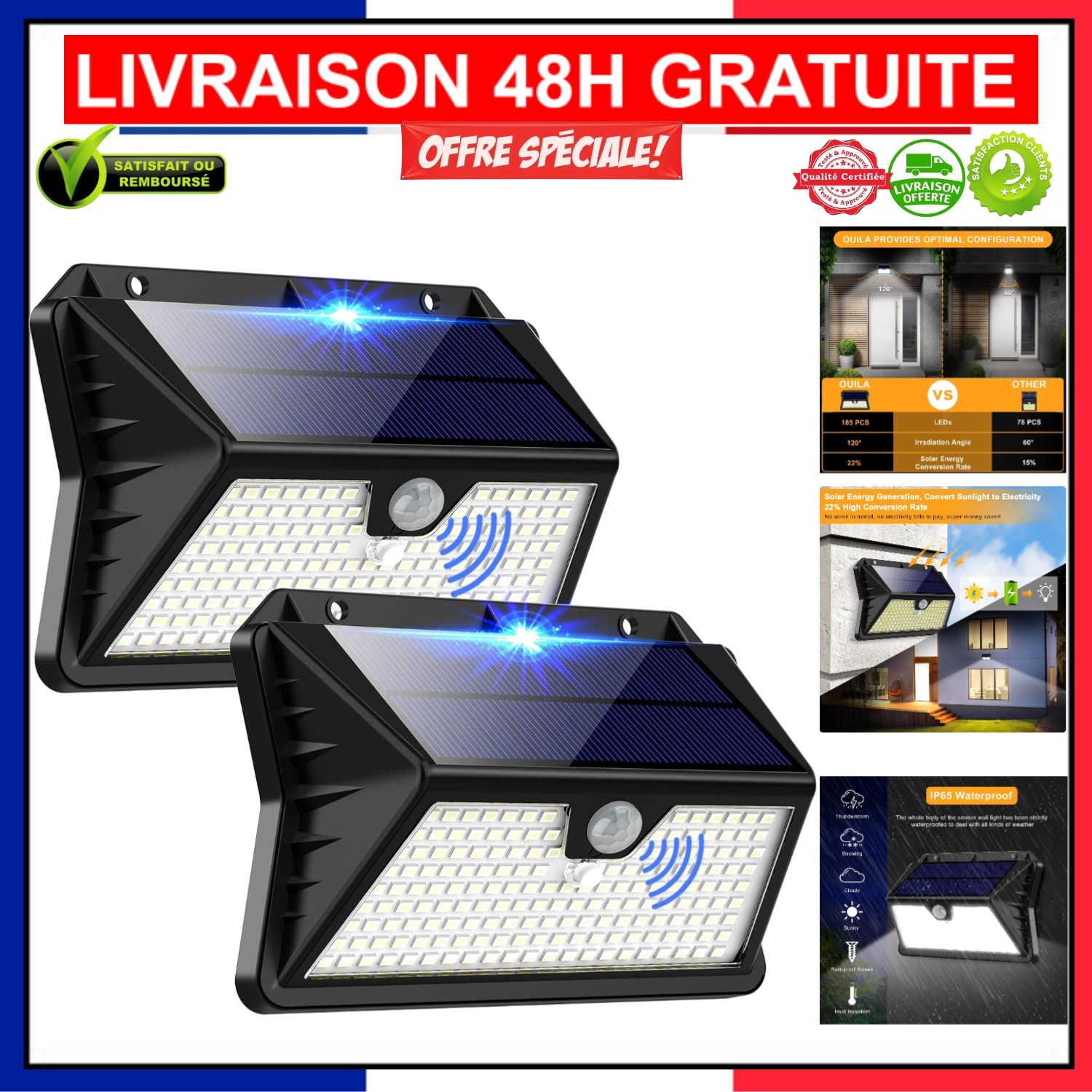 Spot Éclairant Solaire 2PCS, 185 LED, Détection de Mouvement, Économie d'Énergie