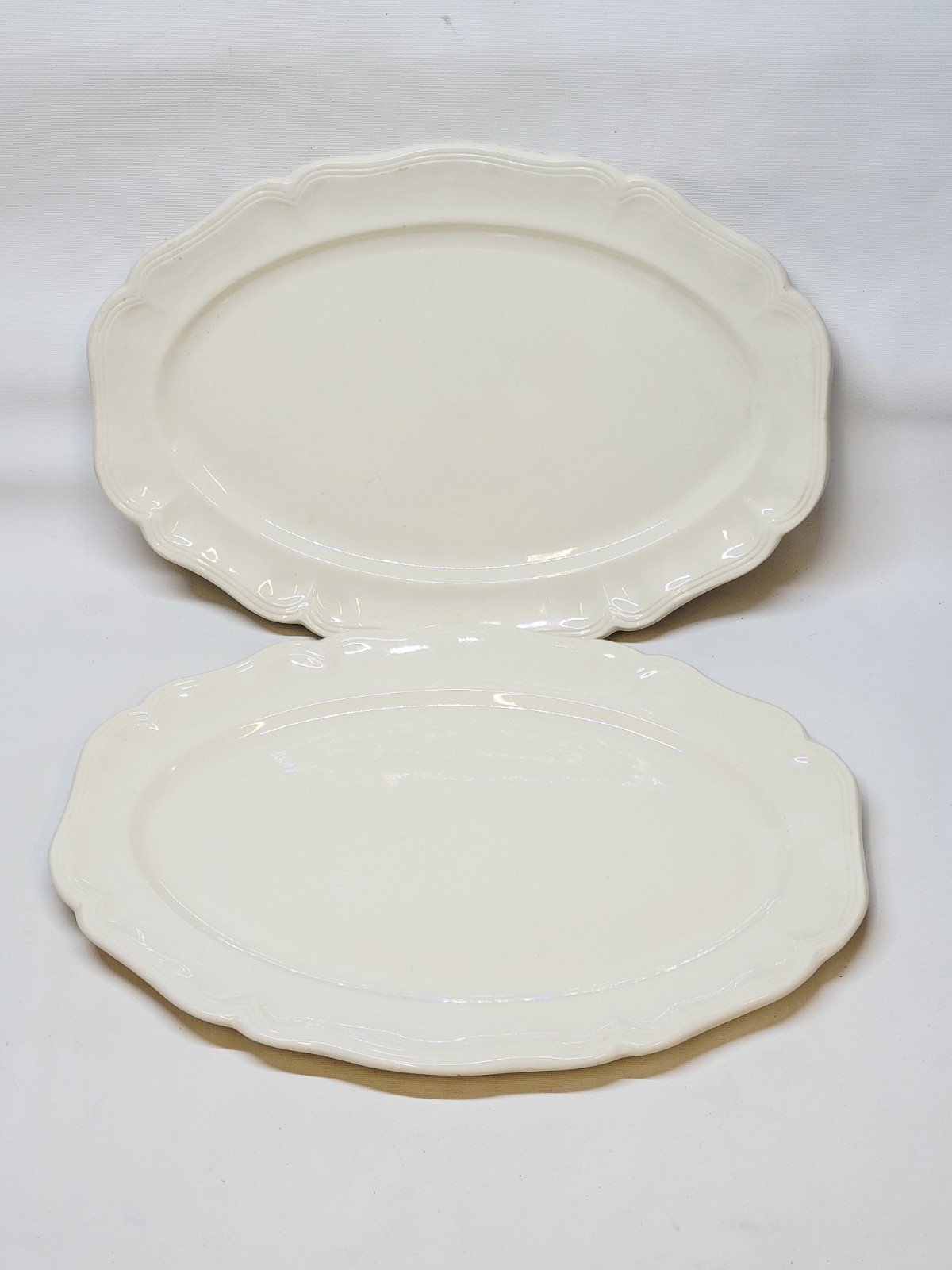 2 Plateaux De Service Ovales En Faïence Sarreguemines Couleur Crème Ivoire Bon état général, à noter une petite ébréchure en dessous d'un bord, voir photos. 43,5 x 30,5 cm Hauteur 3,5 cm Envoi rapide et emballage très soigné. Vous trouverez d'autres jolis objets dans ma boutique. N'hésitez pas à me demander un envoi groupé.