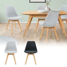 Cet élégant ensemble de quatre chaises allie à la perfection design moderne et confort exceptionnel, ce qui en fait le choix idéal pour votre salle à manger. Le luxueux tissu en lin confère aux chaises une allure raffinée et élégante tout en assurant une assise confortable.
