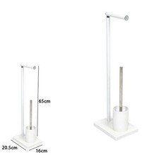 Mettez à jour votre salle de bain avec cet ensemble 2-en-1 autoportant, qui combine un porte-rouleau et un porte-brosse de toilette au design tendance. La finition Noir Mat de la structure et du piètement, associée aux détails chaleureux du Bois Naturel (ou effet bois), crée un look moderne, minimaliste et légèrement scandinave. Fonctionnalité 2 en 1 : combinaison pratique d'un porte-rouleau et d'un porte-brosse WC dans un seul support compact. Design avant-gardiste : finition noire mate élégante pour un look contemporain, équilibré par des accents de bois clair qui ajoutent de la chaleur. Structure stable : la base d'environ 12,5 cm x 16,5 cm est conçue pour assurer un bon équilibre et éviter le basculement. Mixte Matériaux : Structure métal/plastique noir résistante à l'humidité, avec po.