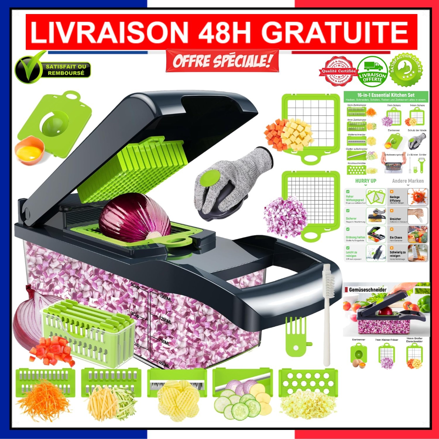 Coupe Légumes Multifonctions 16 en 1 - Mandoline Professionnelle avec 7 Lames