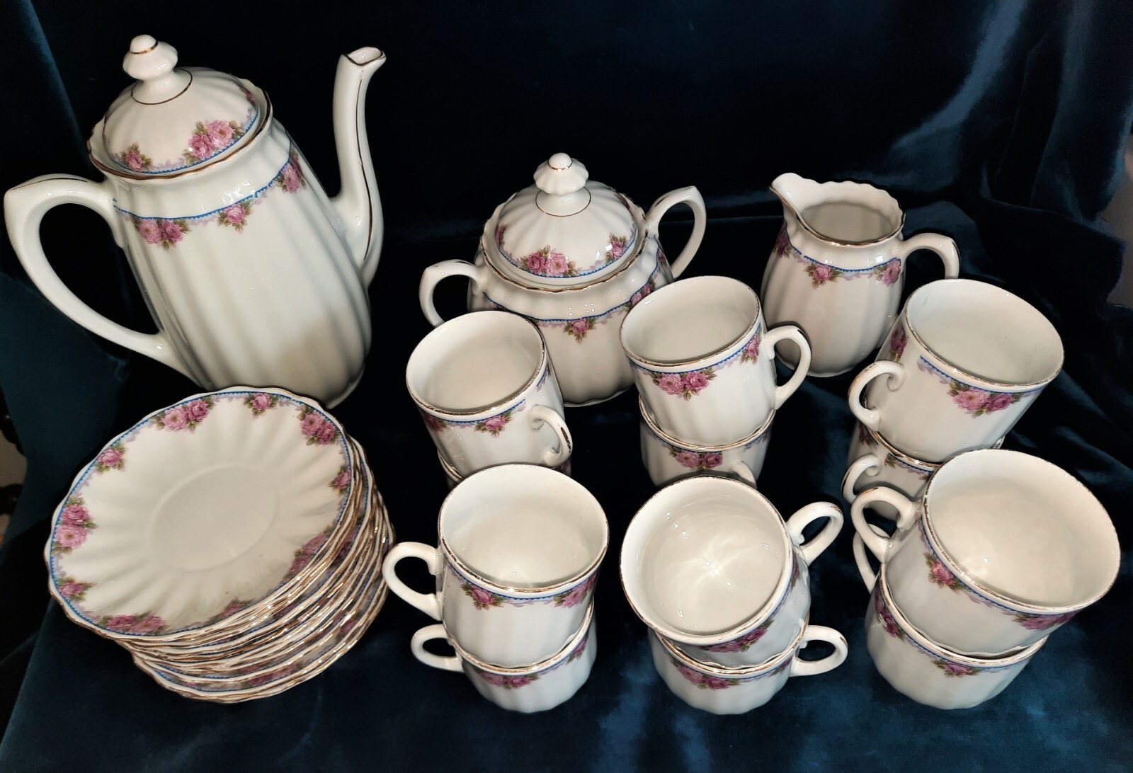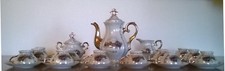 Service à café complet en porcelaine fine décor de roses et à l'or fin 12 tasses