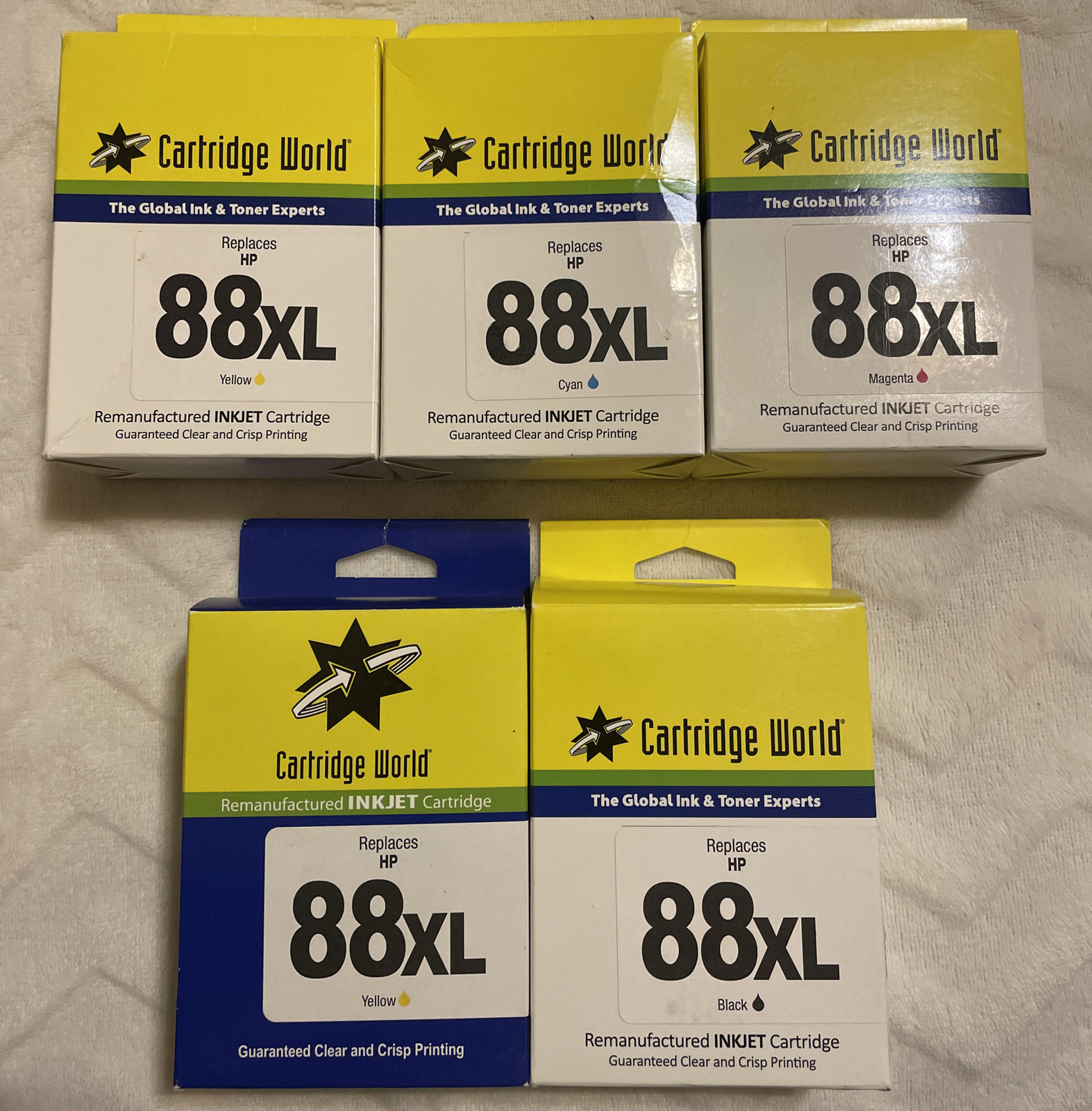 Cartridge World replaces HP 88XL Black, Cyan, Magenta & 2 Yellow. Condition is "New". Shipped with USPS Priority Mail.