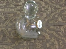 Carafe ronde en verre avec son bouchon, décor de roses, H. 19 cm