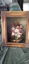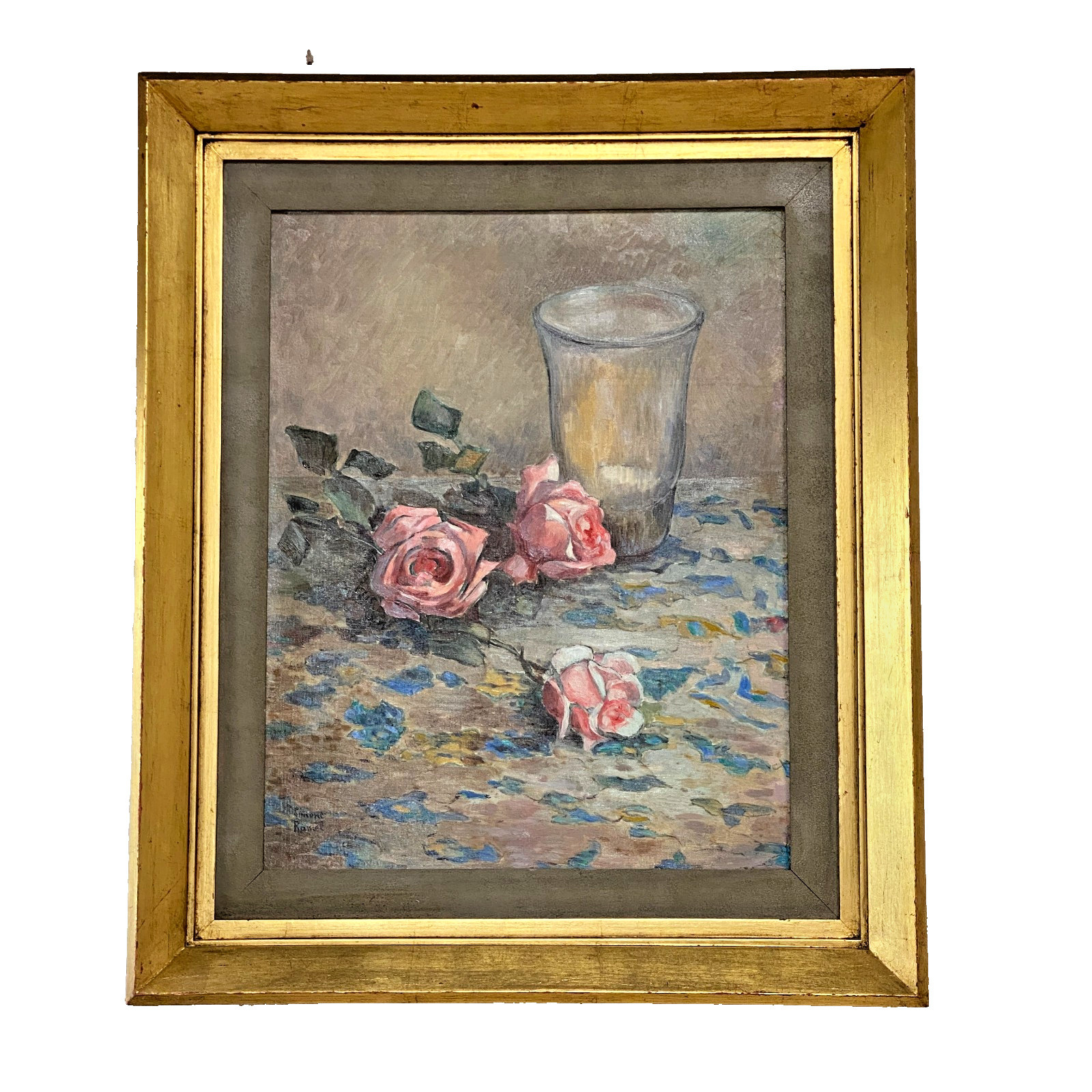 Ancien Tableau Peinture Huile sur Toile - Nature Morte aux Roses - Art Lorrain