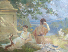 Ancien tableau à l'huile sur toile. Epaisseur : 7,5 cm. Vice Présidente des Artistes Lorrains et Amis des Arts. La Grande Médaille d'Or de la ville de Nancy.