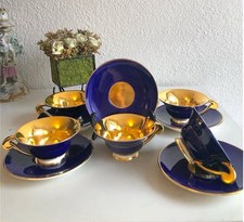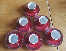 6 tasses à café & soucoupes vieux grès Rhoda. Diam tasses 7,5 cm, haut 5,5 cm.