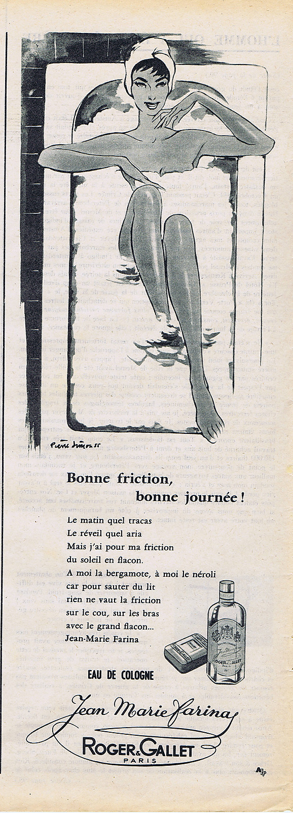 PUBLICITE ADVERTISING 084 1956 ROGER & GALLET eau de Cologne Jean Marie Farinas