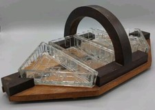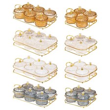 Plateau de Service à Apéritif Ovale en Verre Ciselé Transparent 4 Compartiments