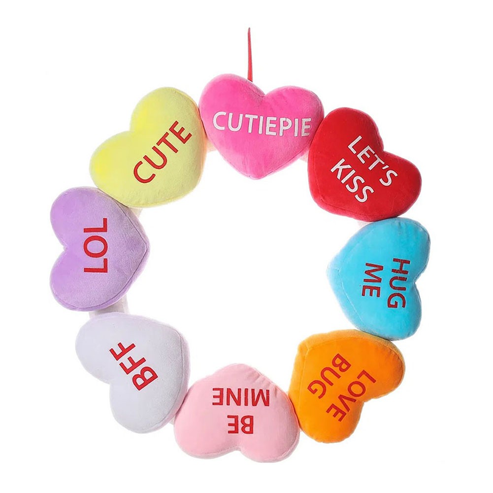 Couronne peluche 40 cm pour la Saint Valentin avec motif enveloppe amour joyeux