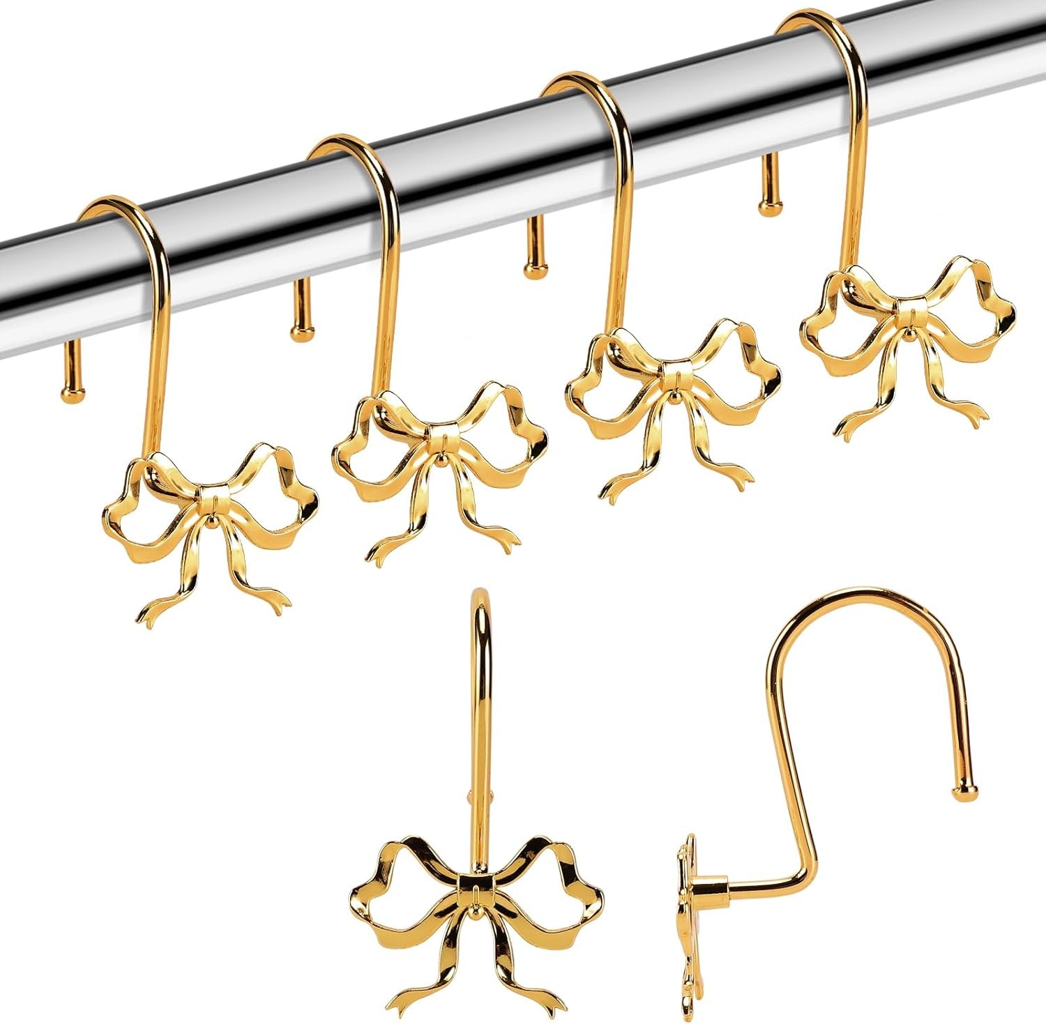 Ensemble de 12 crochets de rideau de douche nœud papillon en métal résistant