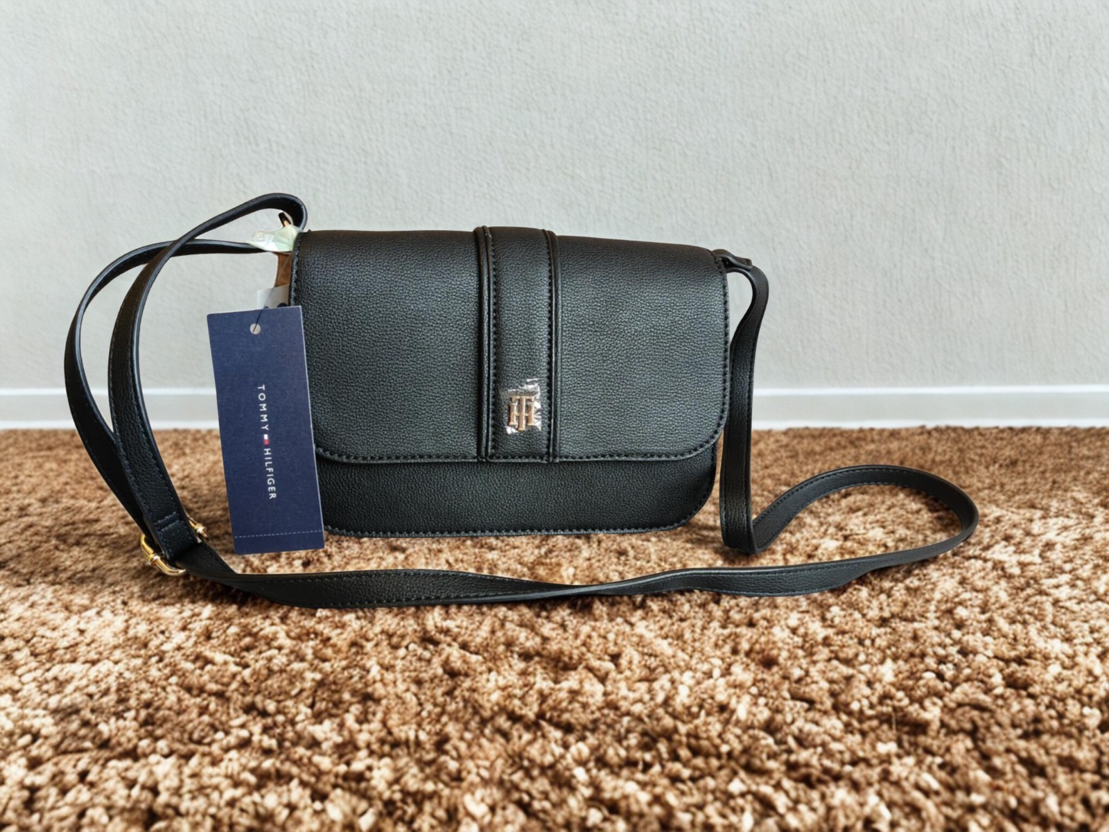 Sac à main Tommy Hilfiger en cuir noir NEUF